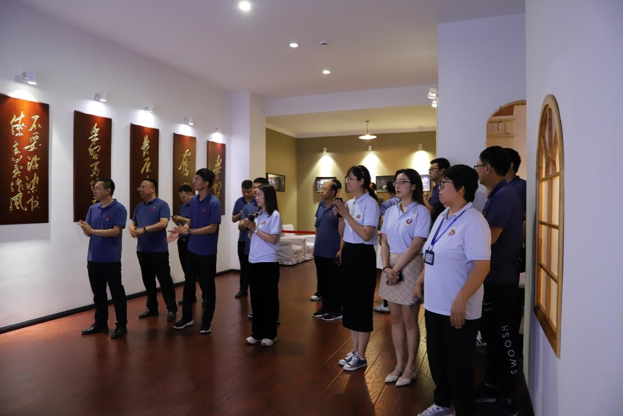 參觀中,公司全體黨員面對鮮紅的黨旗莊嚴(yán)宣誓,重溫入黨誓詞。一句句鏗鏘的誓詞,聲聲堅定的承諾,表達(dá)了對黨的忠誠和熱愛。在講解員的講解引導(dǎo)下,黨員步入每個展廳都認(rèn)真學(xué)習(xí)聆聽,感受著黨性之光,追隨著黨的足跡,深感今日生活來之不易,一件件革命事跡也鞭策了大家不忘初心、牢記使命。